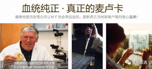 经新西兰怀卡托大学Peter Molan教授多年研究发现,麦卢卡蜂蜜含有抗菌活性物(只有麦卢卡蜂蜜含有),且无法在其它种类的蜂蜜中找到。其抗菌能力非常强大且活性稳定,不像一般蜂蜜的抗菌成分进入人体后易被热量及酶分解。