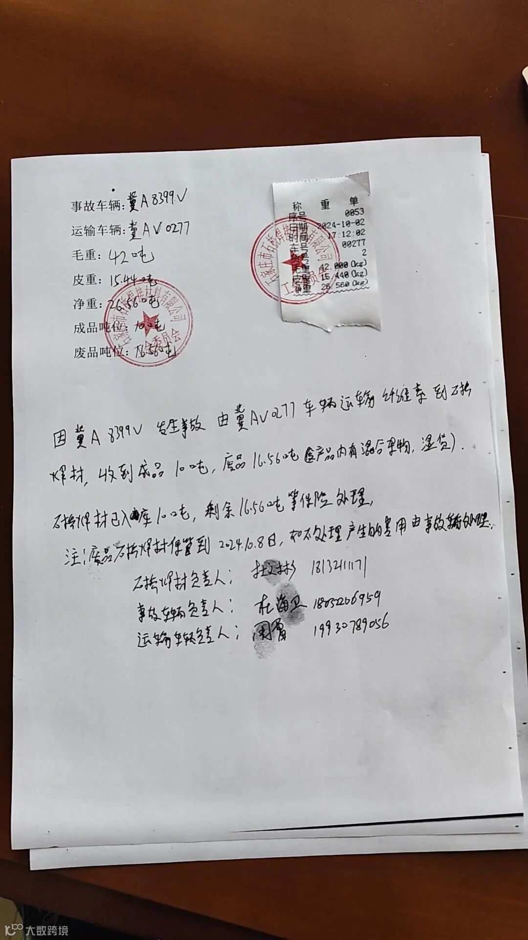 标的规格:详见运单