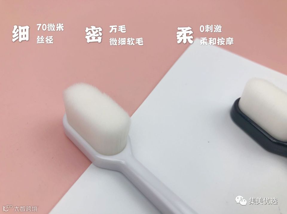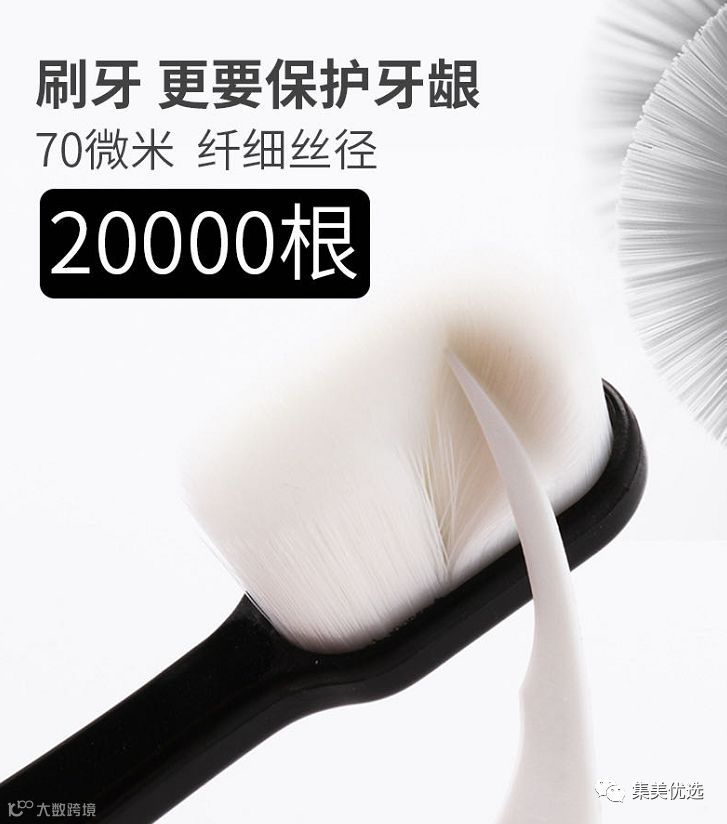 这个刷头的毛粗0.08mm、2万根、并且这个白色刷头的毛毛上布满了白金纳米颗粒、有抗菌,去口臭、抗酸化等功能!刷头,及手柄、全部都有抗菌功能。
