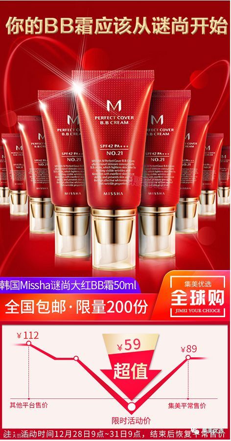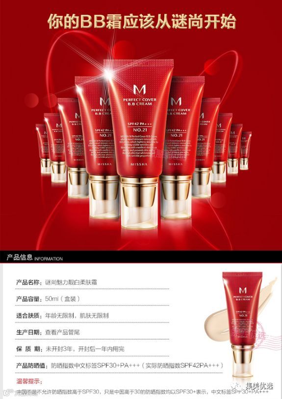 韩国MISSHA谜尚大红BB霜,传说中无所不能的“红BB”,就能让你的皮肤也如明星般匀净透白哦!多种功效齐集一身,代替防晒霜、隔离霜、遮瑕膏和粉底液,轻松演绎裸透亮白的完美肌肤!