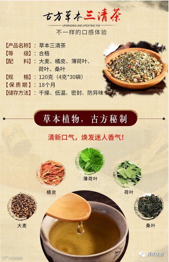 1.去:源头清臭,三清茶中有效成分可促进食物消化,去陈胃火,从源头上清除口臭。