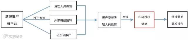 这些所谓的清理僵尸粉工具和技术 ,实际上是利用了微信PC或网页端登录授权和外挂软件进行的操作。他们先通过添加清理人员微信、外部链接跳转、公众号推广这三种方式宣传,引诱用户使用。