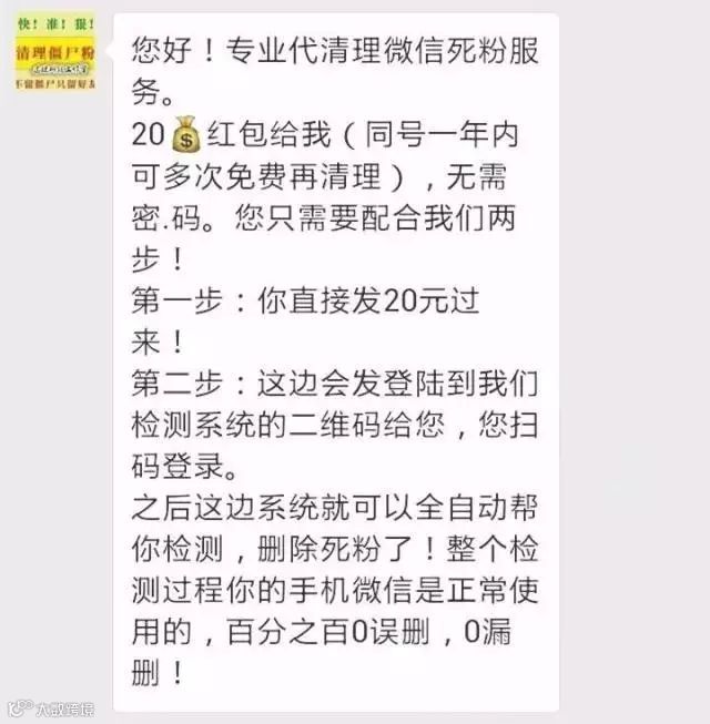 微信安全中心指出,清理僵尸粉工具,本质是一些外挂团伙,开发的一种外挂软件功能,以达到清理微信僵尸粉的效果。