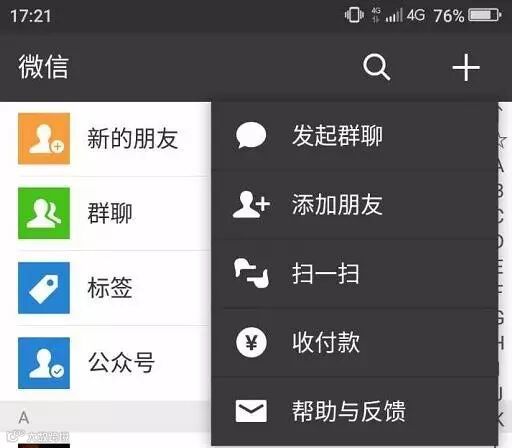 首先,点击右上角加号,发起群聊
