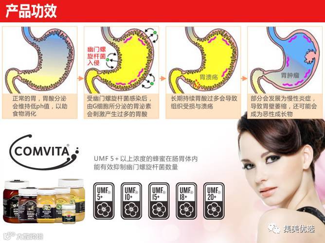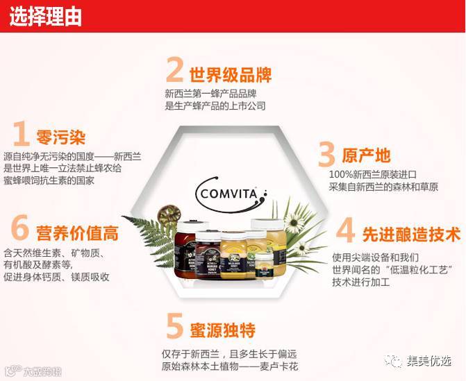Comvita康维他是全球最大的UMF麦卢卡蜂蜜生产及销售商,其品牌更是优质保健品的保证。UMF麦卢卡蜂蜜以强健消化系统,护理肌胃及治理伤口功效显著而闻名世界各地。实验证明,UMF麦卢卡蜂蜜能有效对抗多种顽劣细菌。