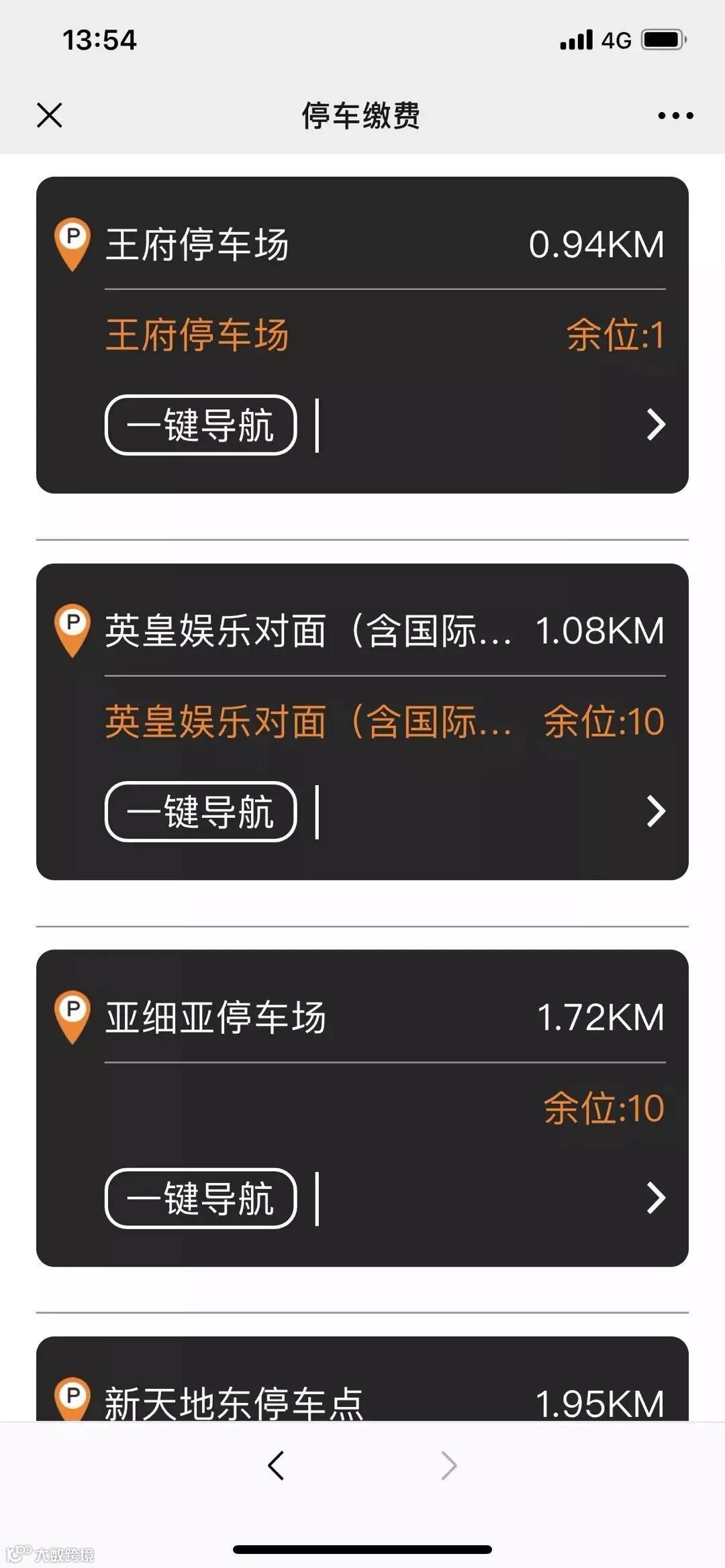 主要公共收费停车场的实时剩余车位信息!