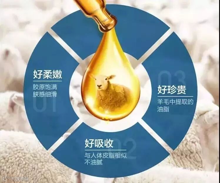 所谓绵羊油,指的是将依附在澳洲“美利诺”绵羊毛上的油脂,经过蒸馏,加工,萃炼出更精纯的羊毛油脂。