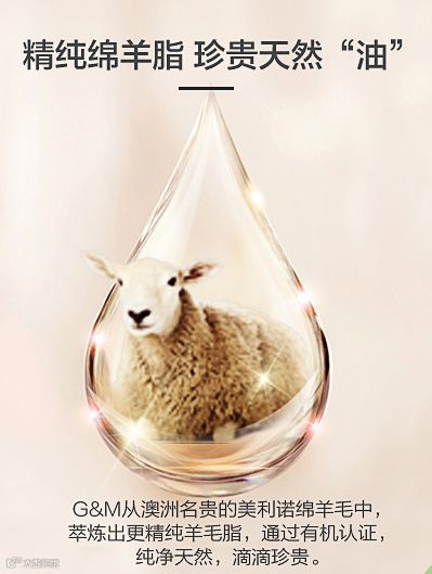 这款G&M绵羊油提炼纯度达到99%以上还加了VE 质地柔软,滋润不油腻,全身都能抹,味道也清新,特别适合干性肤质,儿童孕妇也可用,当面霜与身体乳均可。