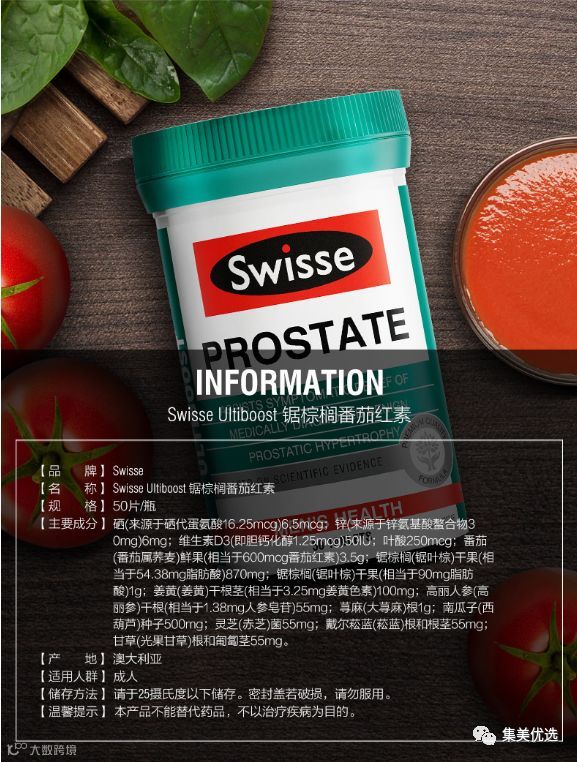 澳洲Swisse前列腺配方是为男士设计的配方,并随科学发展进步不断更新制成。本产品营养成分含据棕榈、锌、硒、番茄红素、南瓜子等!