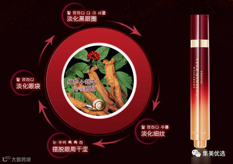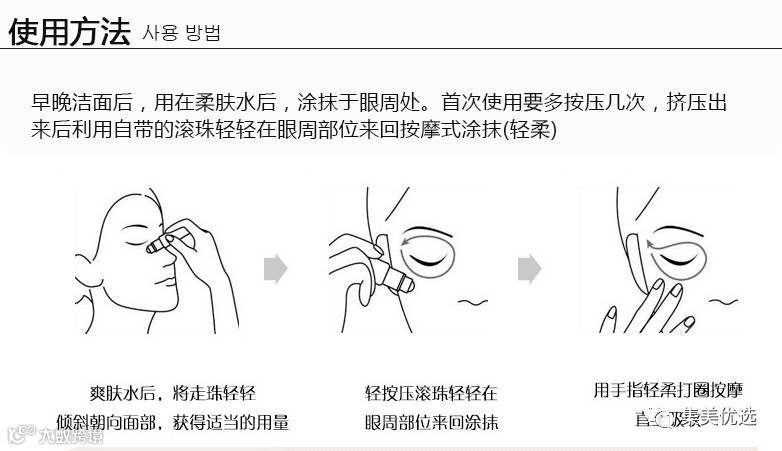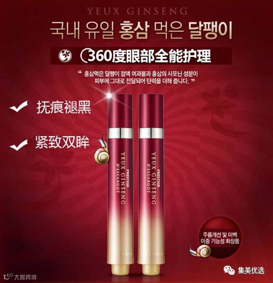 眼部皮肤比脸上其他皮肤薄10倍,而每人每天大约要眨1.2万次眼睛,这种特殊的生理结构使眼部皮肤容易疲劳,出现血液循环不畅,使之成为人体最容易衰老的部分。it's skin伊思红参蜗牛滚珠眼霜,是韩国国内唯一获得吃红参蜗牛皂苷成分专利的保养品。给蜗牛喂养了韩方红参,喂养红参后的蜗牛具有惊人的生命力,其粘液能够加强肌肤的壁垒, 将红参的皂苷成分传至皮肤深处,实现美白补水,淡化眼部皱纹、眼袋、鱼尾纹、黑眼圈。走珠按摩设计,可以消肿,促进眼部血液循环,不油腻,不会长脂肪粒。