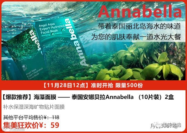 泰国Annabella海藻面膜膜各大平台和香港平均69元一盒,超市搞活动售价也是58元一盒! 每盒10片