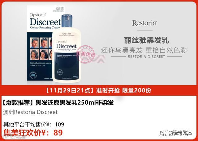 Restoria Discreet黑发还原乳,不是染发剂却能还你自然乌黑头发,是天然安全的乳液,让头发颜色慢慢变深直到长成自然的发色。全面改善头发外皮色素空缺状况,头发的颜色可透过使用的频密程度来调控,更可按你的心意来选择染发范围,将头发色泽由灰白变浅啡,再逐渐变成深啡和乌黑,让头发重拾自然色彩。