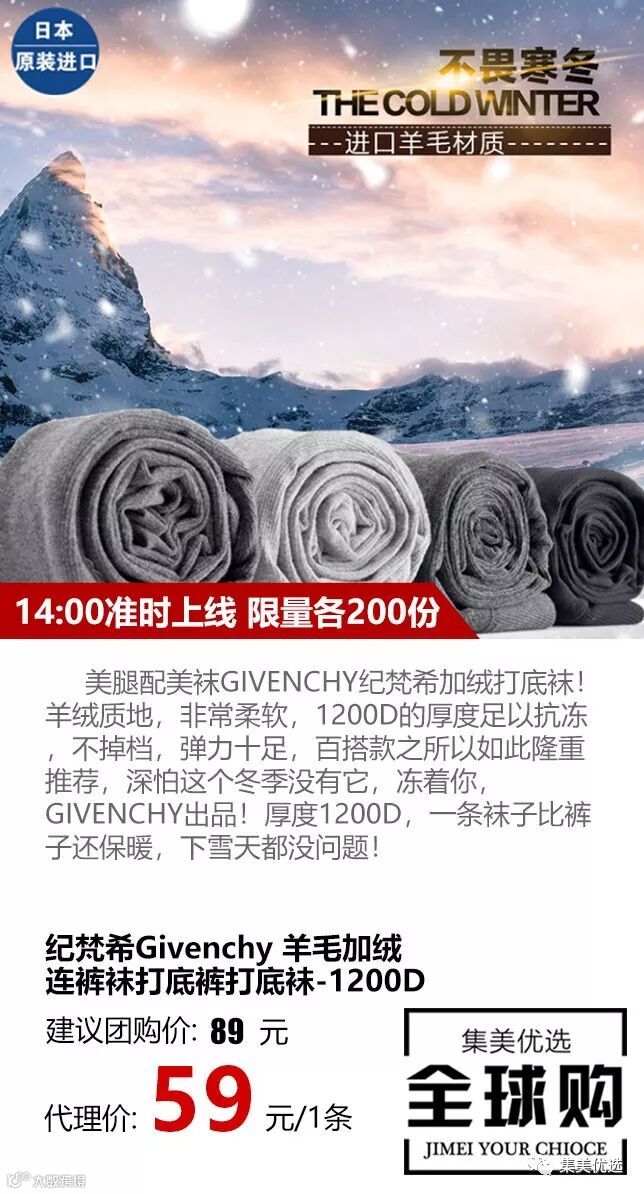 美腿配美袜GIVENCHY纪梵希加绒打底袜! 羊绒质地,非常柔软,1200D的厚度足以抗冻,不掉档,弹力十足,百搭款之所以如此隆重推荐,深怕这个冬季没有它,冻着你,GIVENCHY出品!厚度1200D,一条袜子比裤子还保暖,下雪天都没问题!