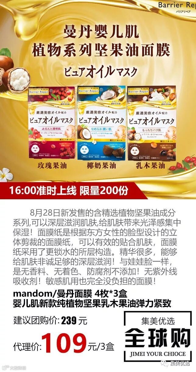 8月28日新发售的含精选植物坚果油成分系列,可以深层滋润肌肤,给肌肤带来光泽感集中保湿!面膜纸是根据东方女性的脸型设计的立体剪裁的面膜纸,可以有效的贴合肌肤,面膜纸采用了更锁水的所层构造。精华很多,能够给肌肤非诚足够的深层滋润!与娃娃脸一样,是无香料、无着色、防腐剂不添加!无紫外线吸收剂!敏感肌用也完全没负担的面膜!