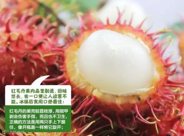 红毛丹的果壳较荔枝厚,用指甲剥会伤害手指,而且也不卫生,正确的方法是用两只手上下握住,像开瓶盖一样将它旋开。