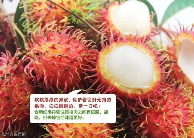 因红毛丹果实长满软刺,最易藏污纳垢,故一定要仔细清洗干净,不要去蒂后浸泡,而应用流水冲洗,然后晾干再剥皮取食。