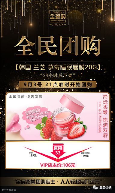 【福利团购】韩国 Laneige 兰芝 草莓睡眠唇膜20g 滋润淡唇纹去角质