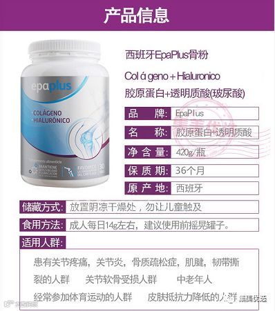 EPA PLUS 胶原蛋白是最丰富的蛋白质,是在人体内,骨骼,肌腱,韧带,关节,软骨,皮肤紧致度的主要因素是必不可少的组成部分。因此胶原蛋白的自然再生的组织,特别是软骨,肌腱和骨骼,关节的灵活性和让他们在完美的健康。防止运动损伤,如肌腱炎和应变,并促进恢复。有助于减少中老年人疼痛。改善外观的皮肤,指甲和头发。透明质酸是天然存在于皮肤,软骨和关节。它作为一个关节软骨和韧带的润滑剂和机械力的保护作用。