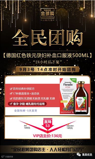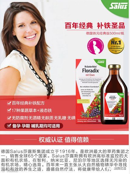 【福利团购】 德国floradix红色铁元孕妇补血女补铁口服液铁元素红铁500ml