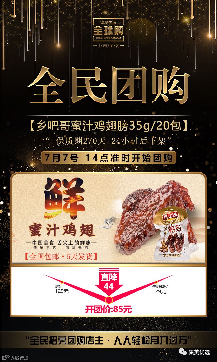 福利团购 乡吧哥蜜汁鸡翅膀温州乡巴佬鸡翅乡巴哥秘制鸡翅35g 20包 限量200份!