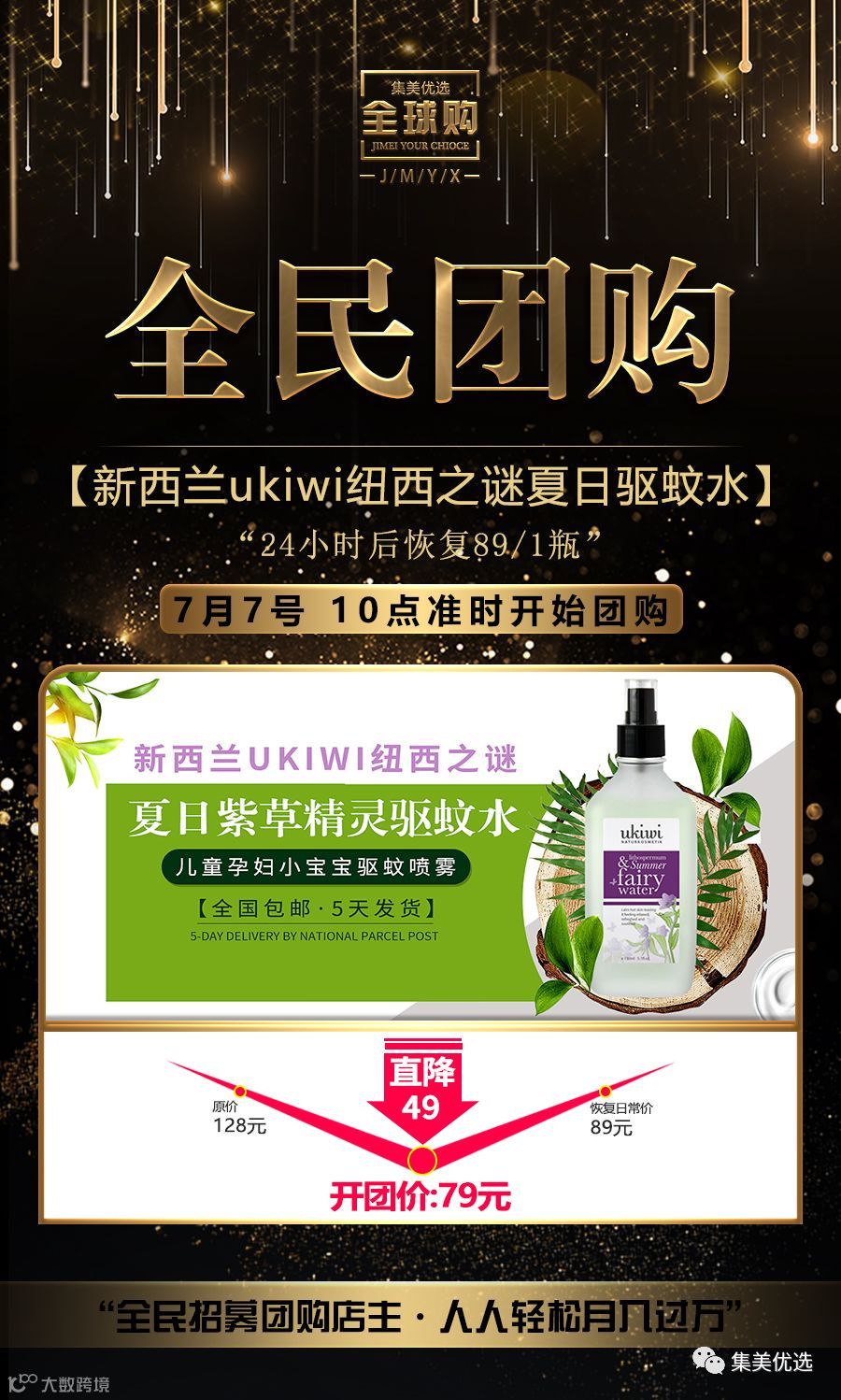 品牌团购 新西兰ukiwi纽西之谜夏日紫草精灵驱蚊水儿童孕妇小宝宝驱蚊喷雾 限量300份