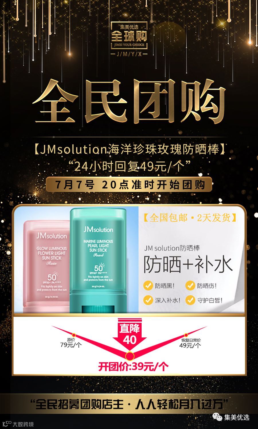1 品牌团购 韩国JMsolution海洋珍珠玫瑰防晒棒JM防晒霜防紫外线 限量200份!