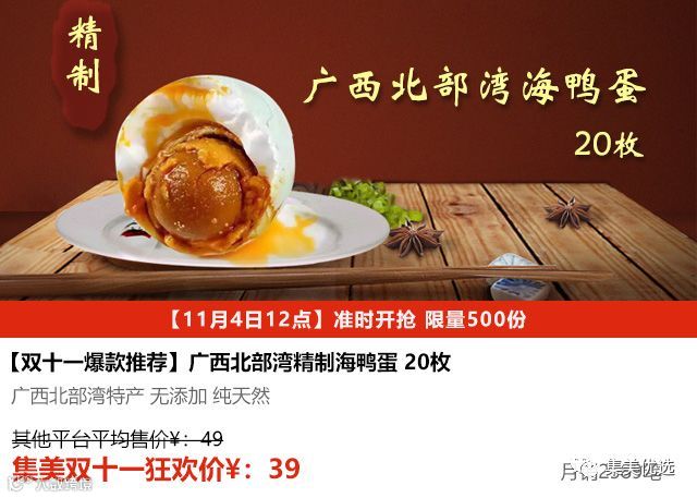 吃鱼虾长大的海鸭富含鱼虾中多种对人体有益微量元素和维生素。蛋白质、氨基酸远高于普通鸭蛋。每100克蛋中蛋白质12.84g,卵磷脂4056mg,比100克牛奶中所含的卵磷脂含量要高50倍。蛋黄橙黄起沙,口感绵软细腻,筷子轻轻一夹,能看到自然出油,味道鲜美无比!