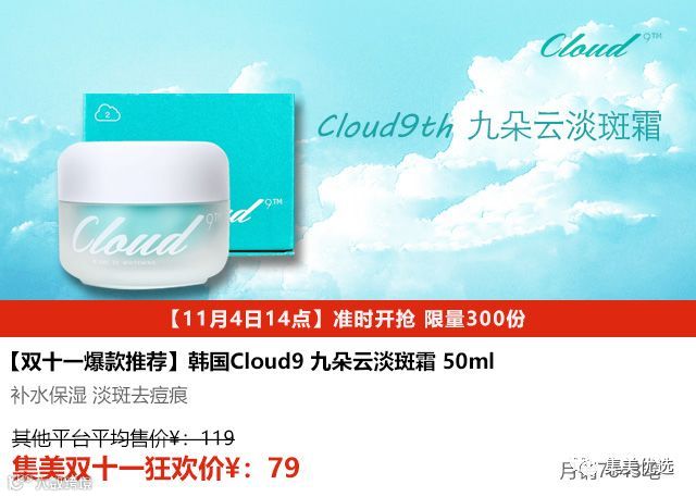 韩国九朵云淡斑霜50ml,集美双11福利价79元!限量300份,售完即止!