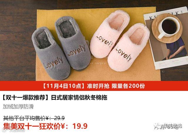 日式居家情侣加绒加厚防滑棉拖,集美福利价仅需19.9!限量各200份,售完即止!