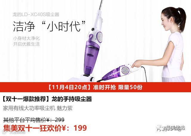 龙的手持吸尘器家用有线大功率吸尘机,双11特价199元!限量50份,准点关注!