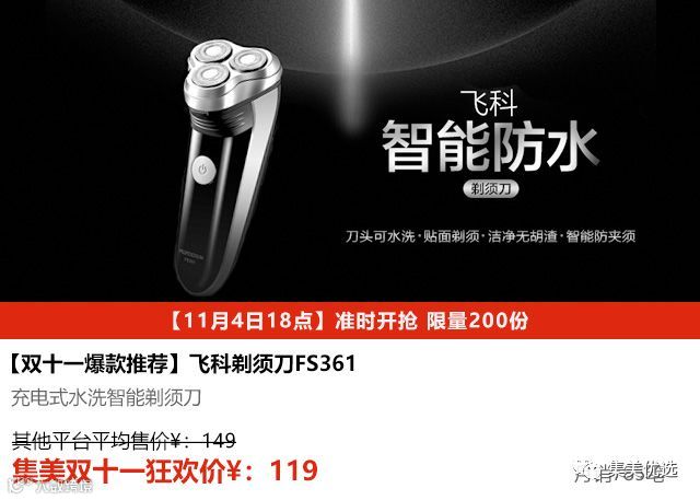 大品牌飞科剃须刀FS361,智能三刀头浮动贴面系统