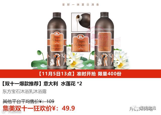 东方宝石水莲花沐浴露,集美全网最低价49.9/2瓶!限量400份,售完即止!