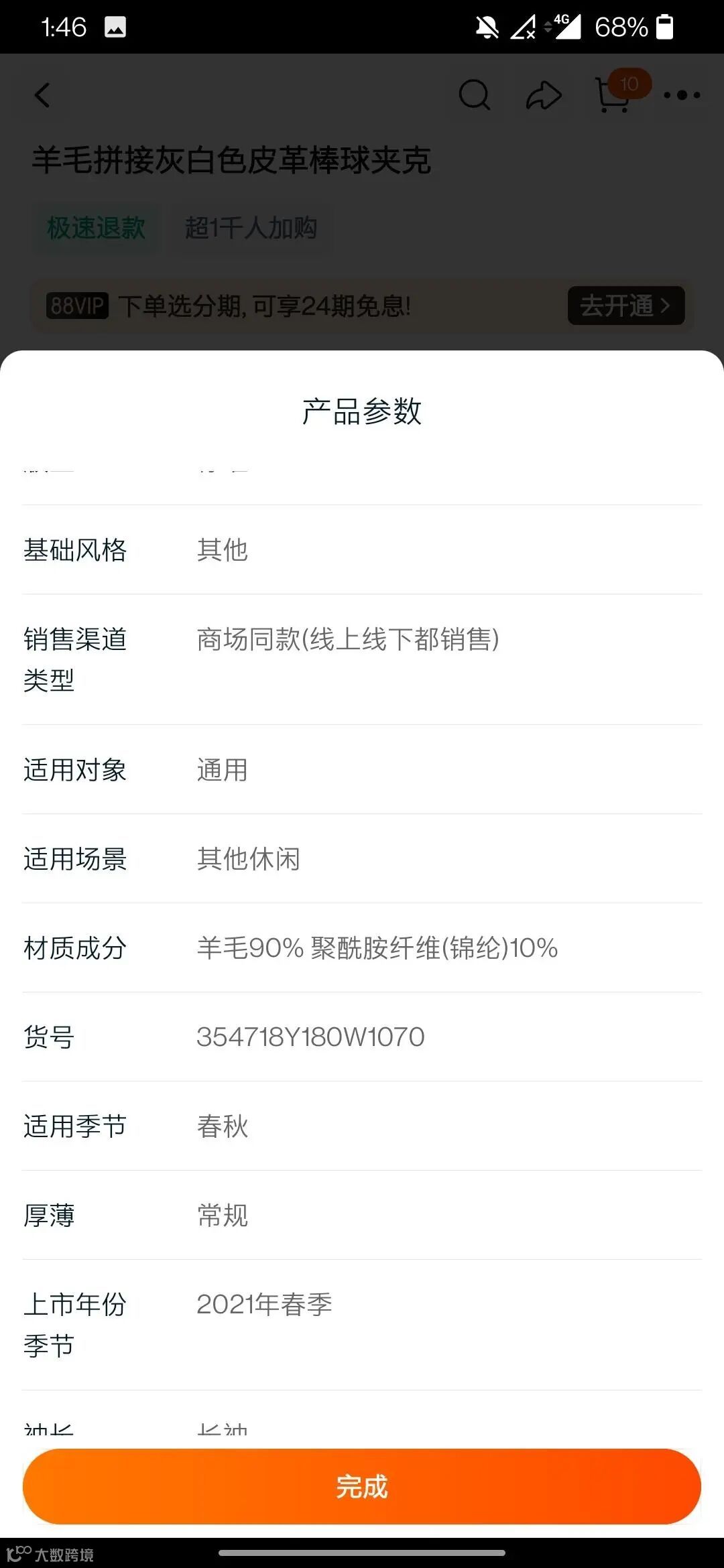 标的规格: SAINT LAURENT PARIS 棒球夹克