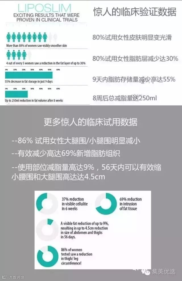 澳大利亚医学美容界王牌。每个女人,都会为身体或多或少的赘肉和多余的脂肪犯愁,都该有的是完美的身材。坚持使用,让你在数周后适当的减掉多余的脂肪,紧致你的皮肤,抚平你的橘皮组织。