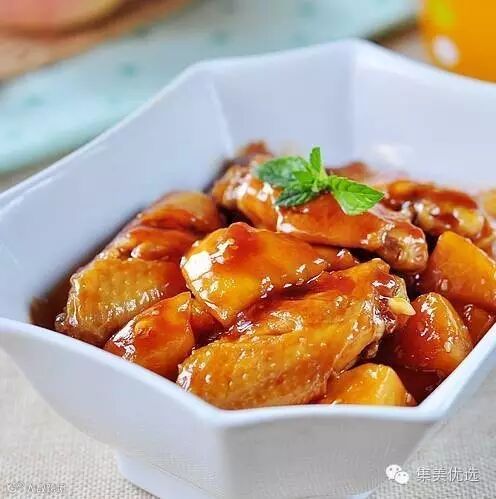 鸡翅、苹果、姜、盐、番茄酱、生抽、白糖、米醋、鸡精