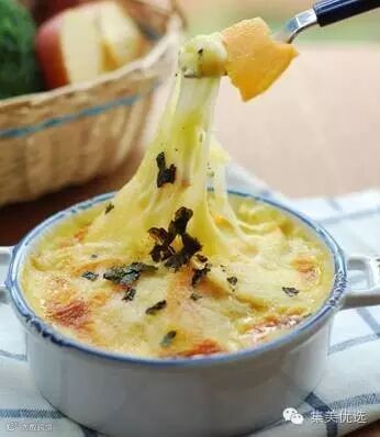 6、最后再铺上一层马苏里拉奶酪,预热180度烤箱中烤制20分钟即可。