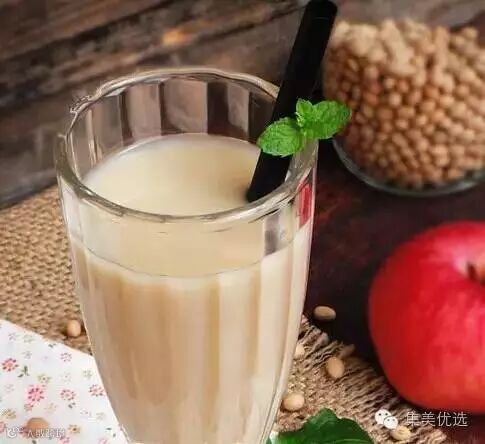 5、把煮好的黄豆带着汤水一起,连同苹果一块榨出豆浆。