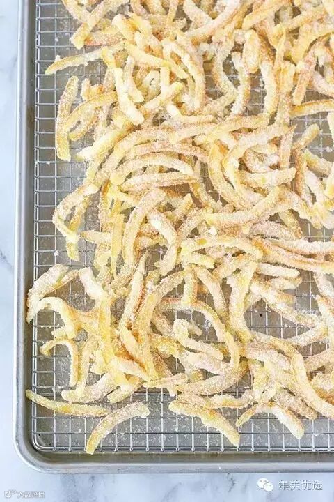 5、被糖包裹15分钟后,将橙皮放在架子上充分干燥至少48小时。