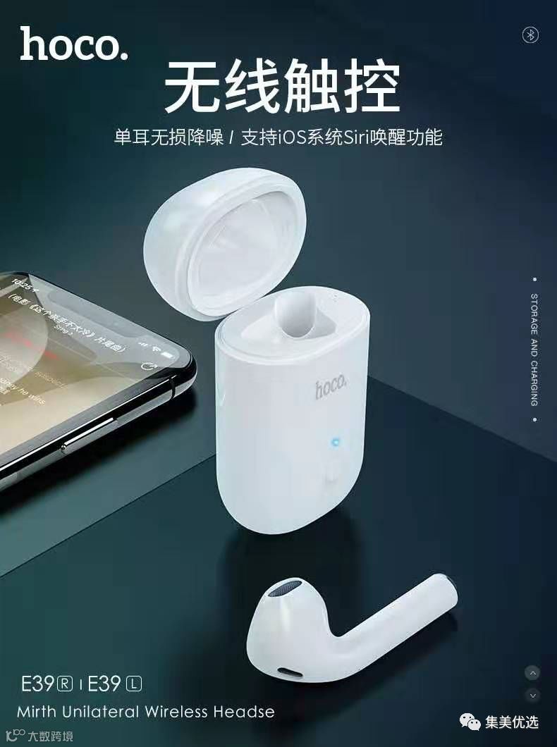 浩酷(HOCO) E39舒悦单耳无线蓝牙耳机 air TWS真无线 pods手机耳机 苹果安卓通用