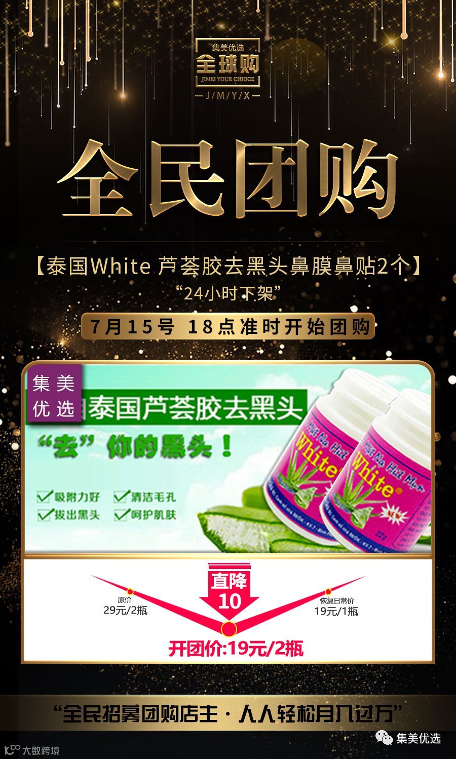 品牌团购泰国 达英White 芦荟胶去黑头鼻膜鼻贴 22g 2个