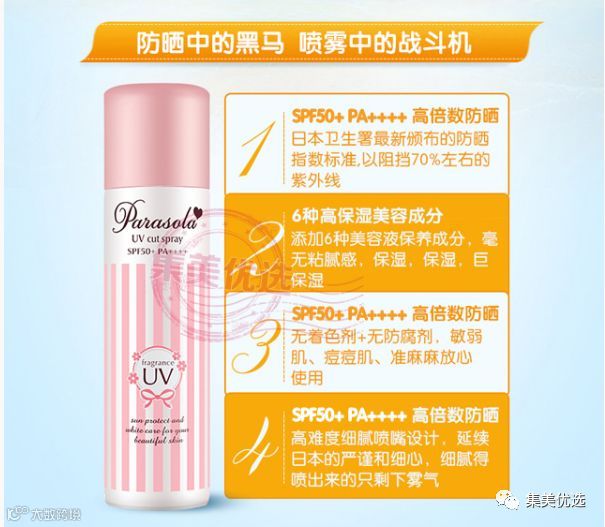 娜丽丝 NARIS UP 保湿防晒喷雾SPF50+ PA++++ 能让肌肤免受紫外线伤害,🇯🇵国内最高的防晒系数能抵御UVA、UVB。特别添加10种丰富的美容液精华,全面防晒的同时呵护肌肤,透明无色不泛白,即使是头发或上妆后都可使用!防水配方💦可以倒着使用,即使后颈、背部、脚尖等难涂抹部位也能轻松喷到。清爽不黏腻,带有淡淡的花香,清香怡人🌹