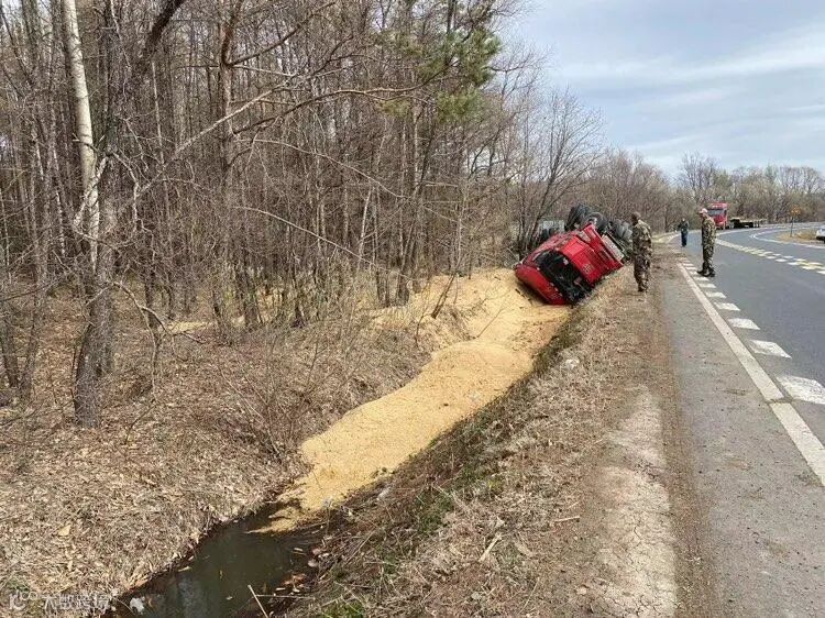 受损原因: 货物翻到路边水沟内,导致水湿和汽车柴油污染