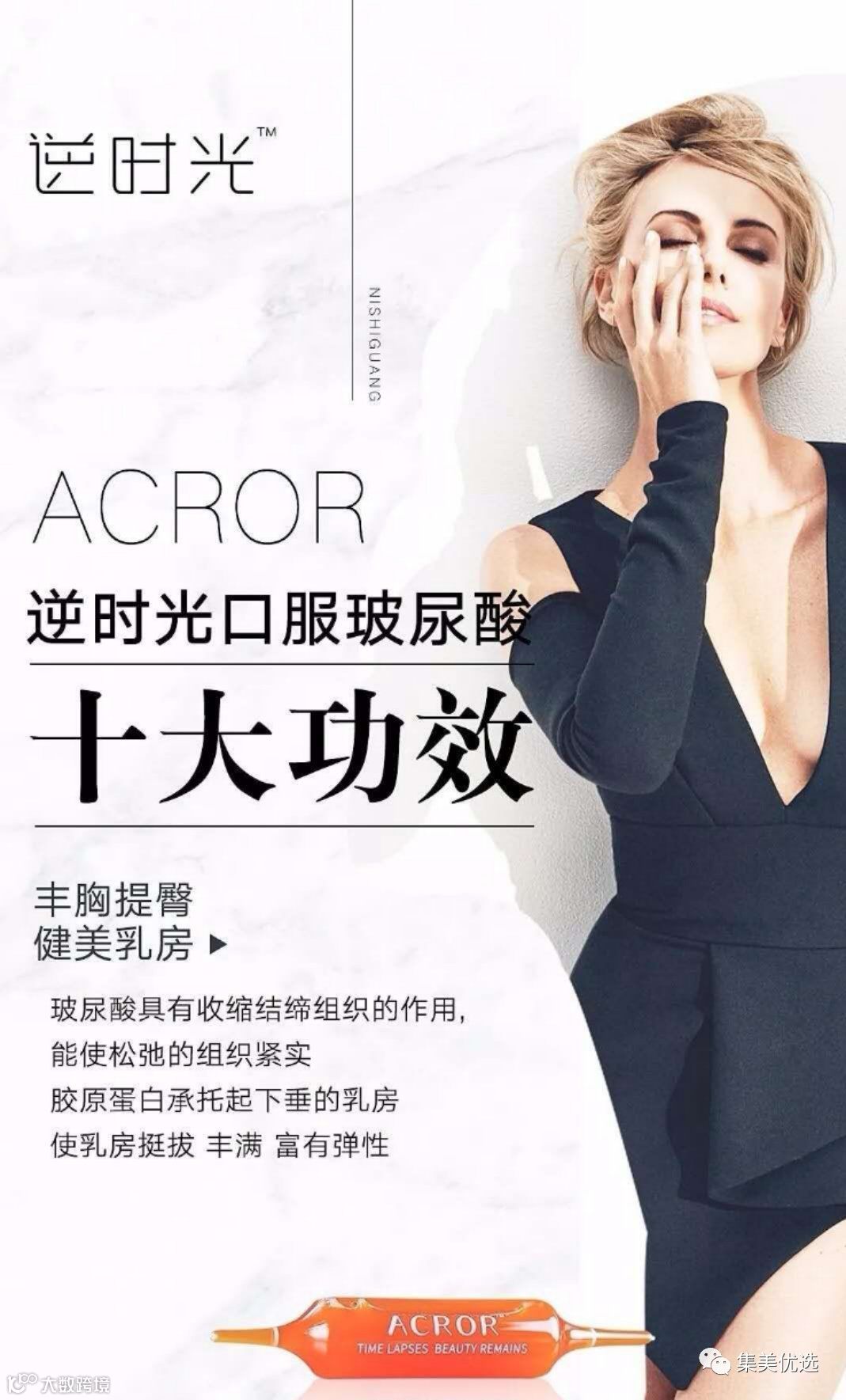 逆时光口服玻尿酸具有以下十大功效:1深层补水、晶莹弹润,2美白紧致、柔嫩肌肤,3修复重生、对抗疤痕,4祛黑眼圈、消除眼袋,5抗皱去纹、延缓衰老,6收缩毛孔、淡化黑斑,7软化指甲、滋养甲面,8锁定钙质、强健骨骼,9丰胸提臀、健美乳房,10强韧发丝、柔亮发丝