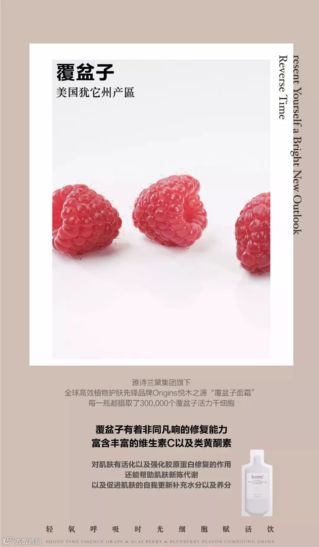 每一瓶都摄取了300,000个覆盆子活力干细胞