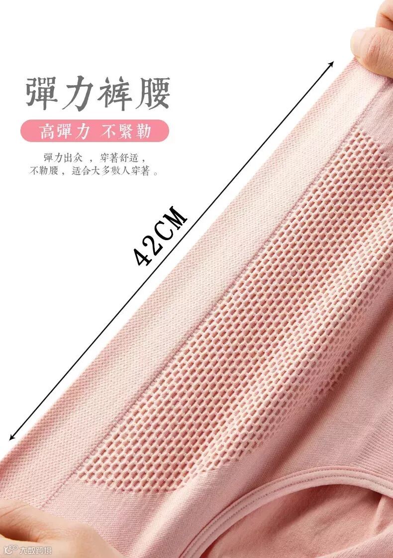 3D蜂巢暖宫内裤在腰部添加了加宽的护腰层,弹力特别好,可以拉伸42cm呢!无缝无痕,胖MM穿起来也非常舒适呢,完全不会勒肉。