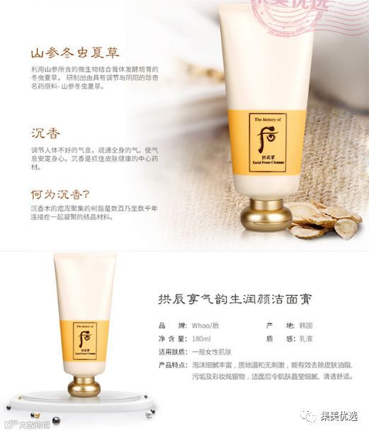 Whoo后 拱辰享气韵生润颜洁面膏 泡沫保湿 深层清洁洗面奶180ml