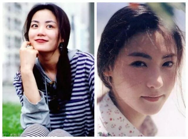还po出王菲和张柏芝年轻时的照片对比: