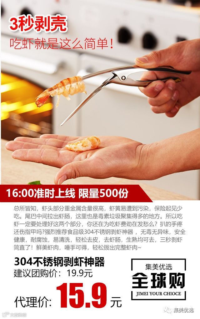 总所皆知,虾头部分重金属含量很高,虾黄易遭到污染,保险起见少吃。尾巴中间拉出虾肠,这里也是毒素垃圾聚集得多的地方。所以吃虾一定要处理好这两个部分,你还在为吃虾费劲在发愁么?扒的手疼还伤指甲吗?强烈推荐食品级304不锈钢剥虾神器 ,无毒无异味,安全健康,耐腐蚀,易清洗,轻松去皮,去虾肠,生熟均可去,三秒剥虾简直了!鲜美虾肉,唾手可得,轻松拨出完整虾肉~