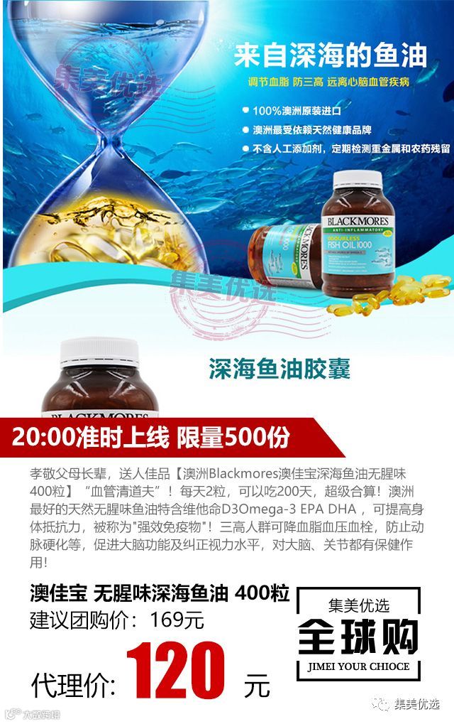 孝敬父母长辈,送人佳品🎁【澳洲Blackmores澳佳宝深海鱼油无腥味400粒】👍👍“血管清道夫”!每天2粒,可以吃200天,超级合算!澳洲最好的天然无腥味鱼油特含维他命D3Omega-3 EPA DHA ,可提高身体抵抗力,被称为"强效免疫物"!三高人群可降血脂血压血栓,防止动脉硬化等,促进大脑功能及纠正视力水平,对大脑、关节都有保健作用!