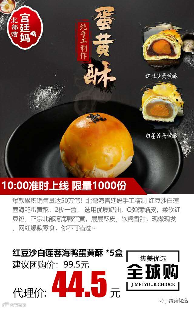 爆款累积销售量达50万笔!北部湾宫廷妈手工精制 红豆沙白莲蓉海鸭蛋黄酥,2枚一盒, 选用优质奶油,Q弹薄馅皮,柔软红豆馅,正宗北部湾海鸭蛋黄,层层酥皮,软糯香甜,现做现发,网红爆款零食,你不可错过~